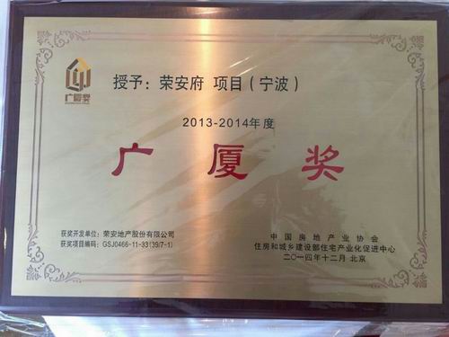 “广厦奖”是经国家批准的我国房地产开发项目的综合性大奖,获奖项目必需是坚持周全贯彻科学生长观,以资源节约、情形友好、修建协调社会为宗旨,做到妄想设计水平高、情形质量好、工程质量优、住宅性能好,在推进住宅工业化、“四节一环保”息争决宽大群众住房问题方面起树模、刊行动用的项目,属于行业内最权威的房地产奖项评选。
